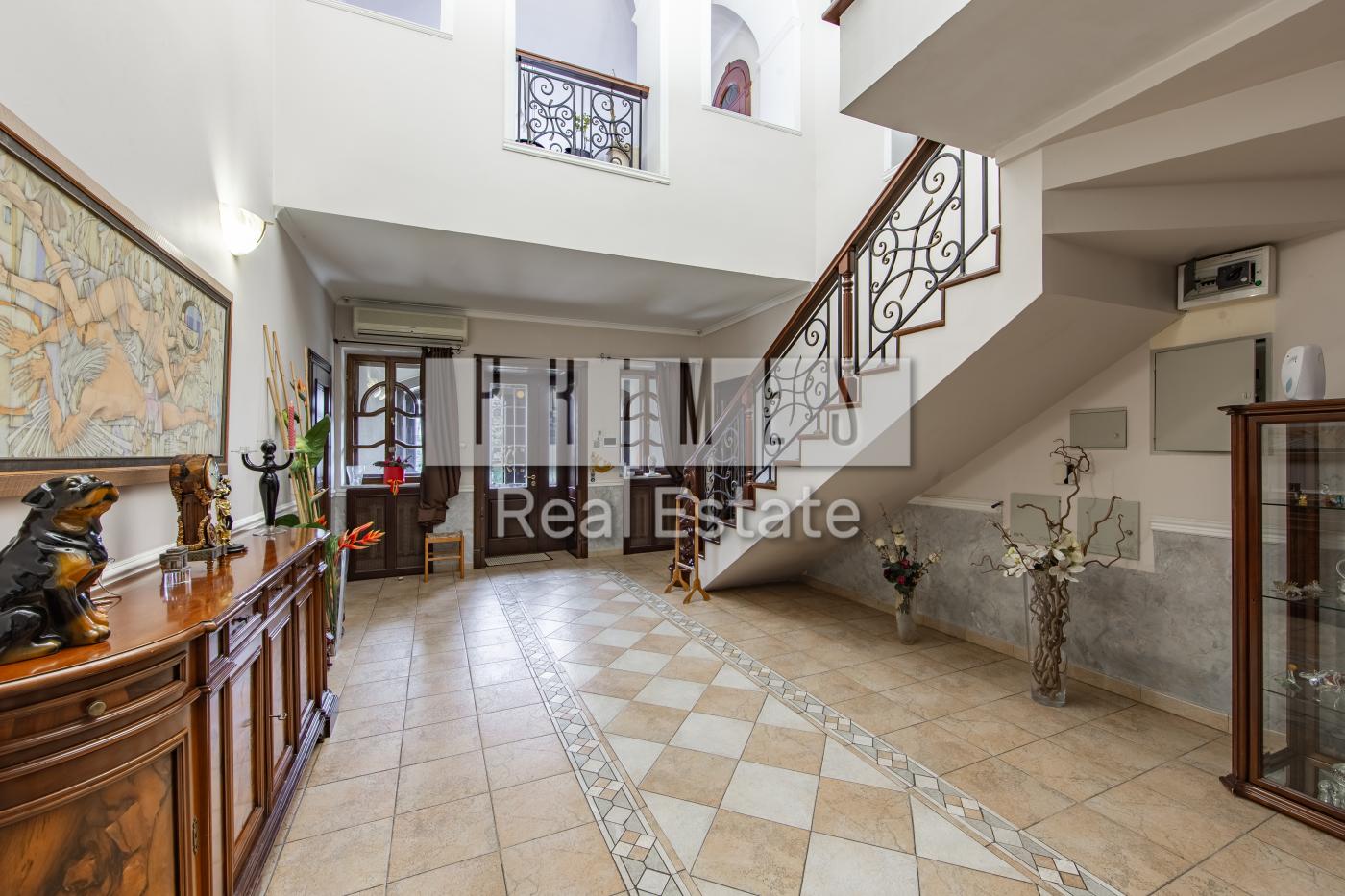 На першому поверсі розташована простора кухня, гостина, зал з домашнім кінотеатром, кабінет, туалет, пральна.