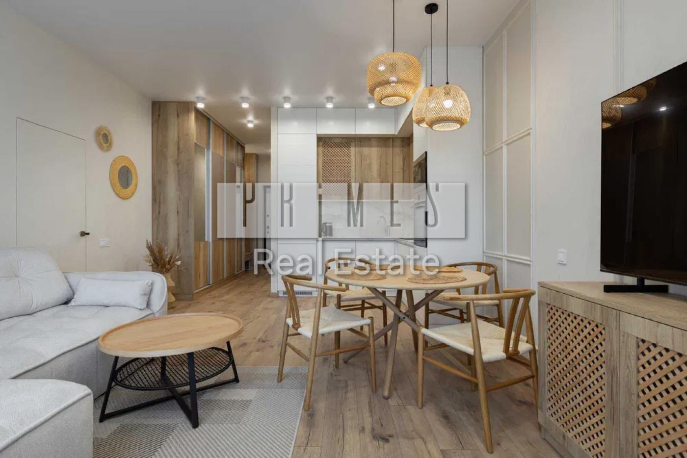 Вітальня з кухнею, 1 спальня, 1 санвузол та гардероб. Меблі від українських дизайнері...Детальніше