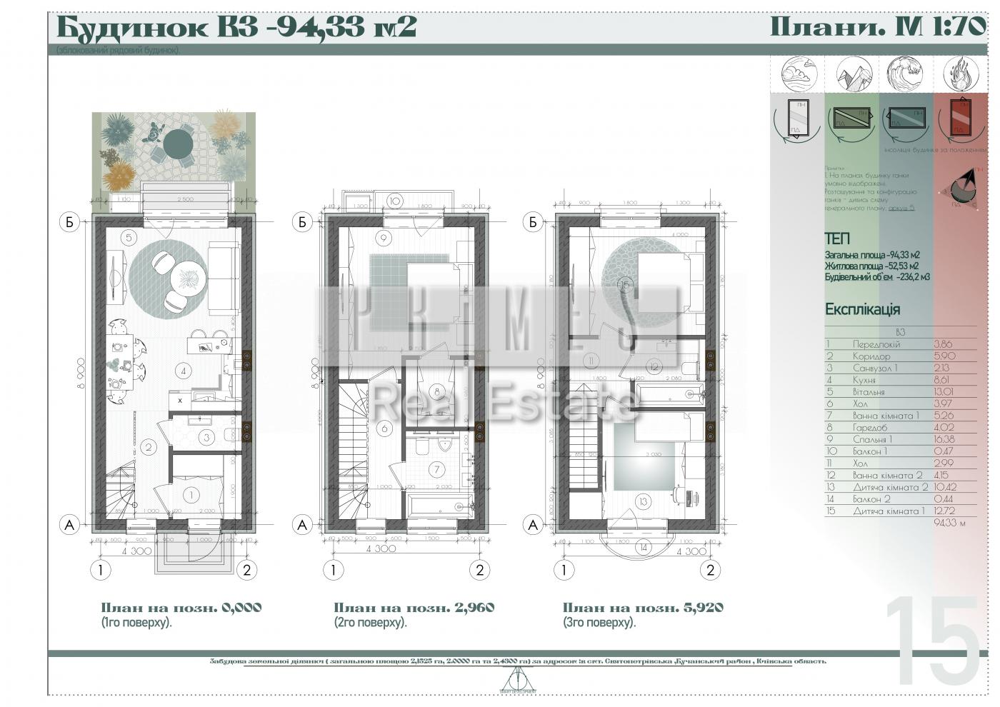 Площа: 93 м2, 2 поверхи, 3 кімнати паркомісце