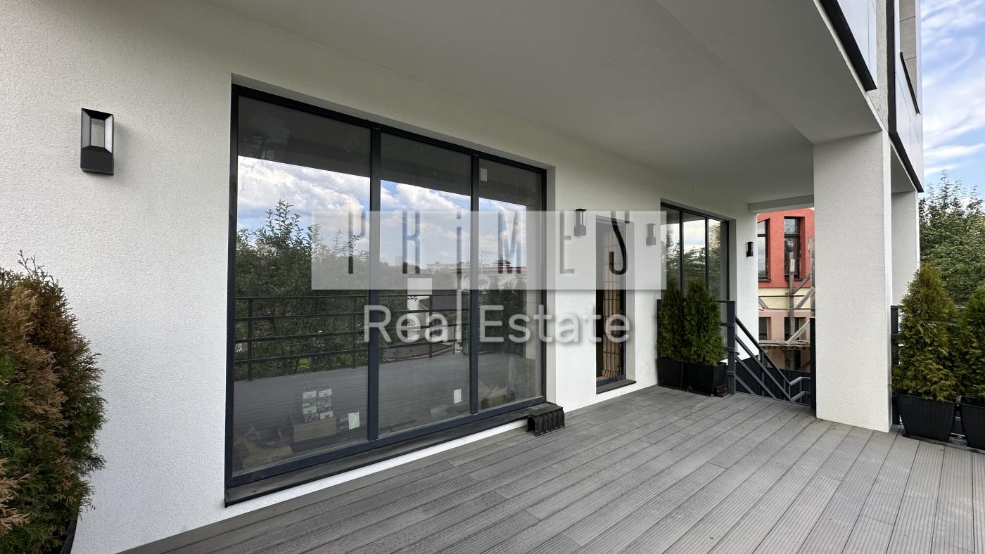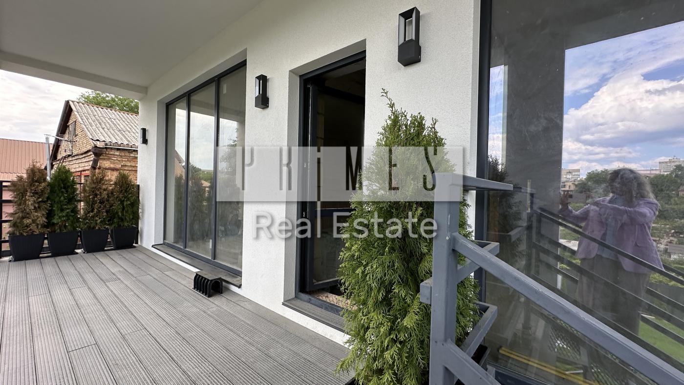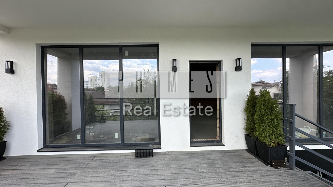 #28513 Сучасний монолітний будинок біля Голосіївського парку з власним бомбосховищем і краєвидами на Печерськз найкращими школами поруч. Розташування – тиха зелена вулиця поруч із Голосіївським парком, 15 хвилин на авто до центру міста.