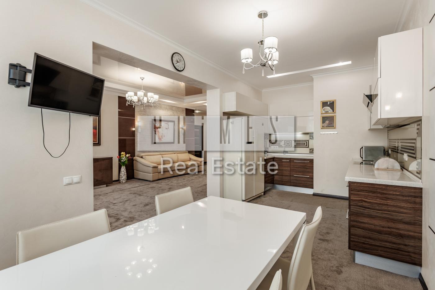 #28833 Простора чотирикімнатна квартира (147 м2) в одному з кращих житлових комплексів Києва «Новопечерські Липки» на вулиці О.Верхогляда, 20. Розкішний дизайнерський інтер'єр з елементами класики, просторі світлі кімнати, італійські меблі відомих марок, сантехніка найвищої якості. Планування включає: кухню, вітальню, 3 спальні, одна з них майстер-...Детальніше