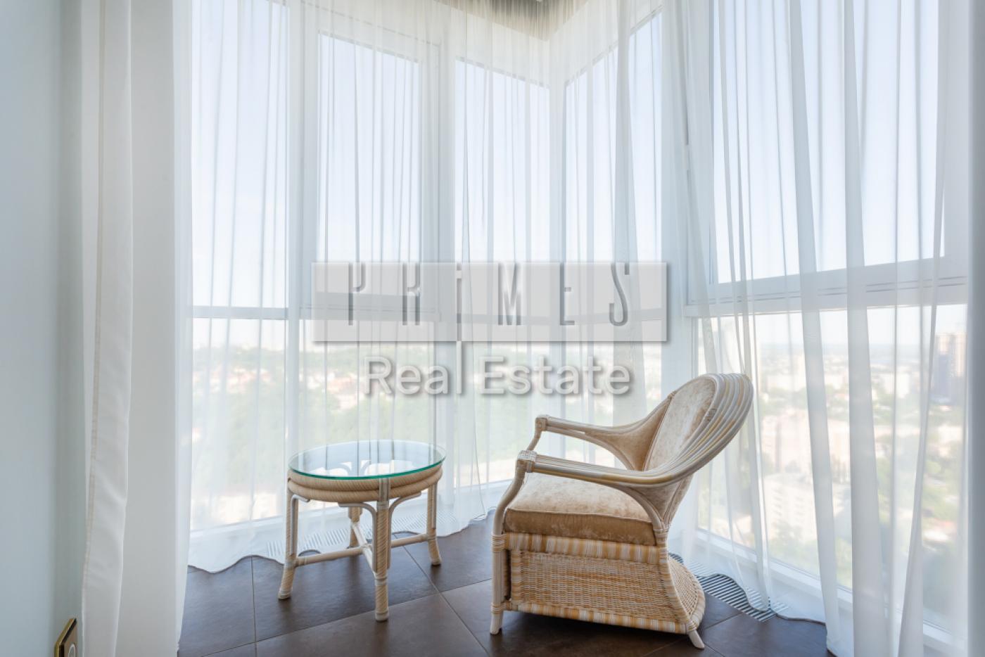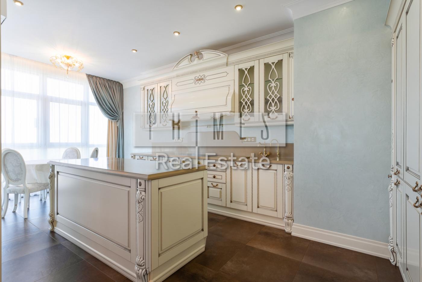 4 кімнатну квартиру з функціональним плануванням: три окремі спальні, кухня-вітальня, дві ванні кімнати та гардеробна.