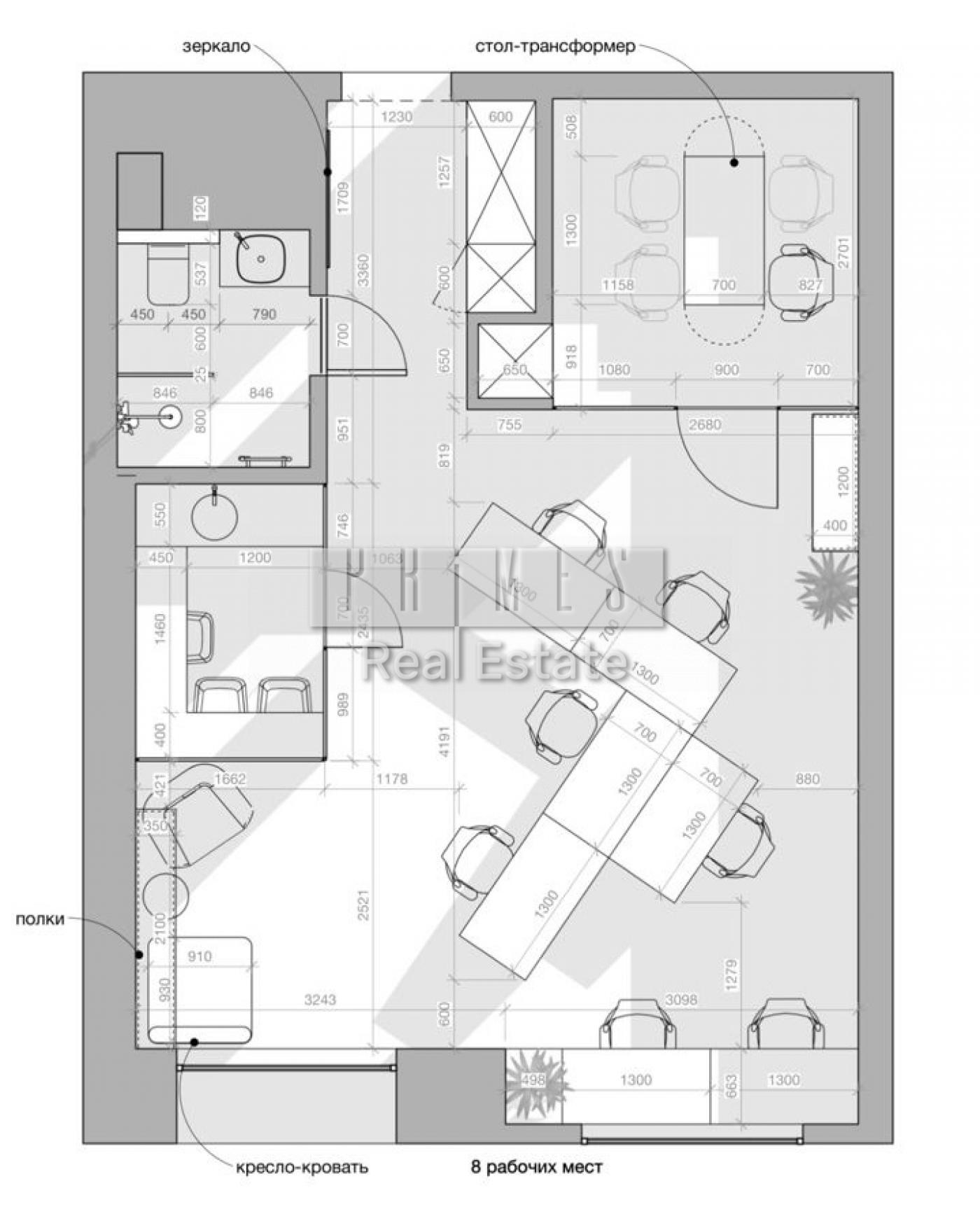 • Зонування: переговорна/кабінет директора, основний зал із зоною відпочинку, кухня, санвузол з душк...