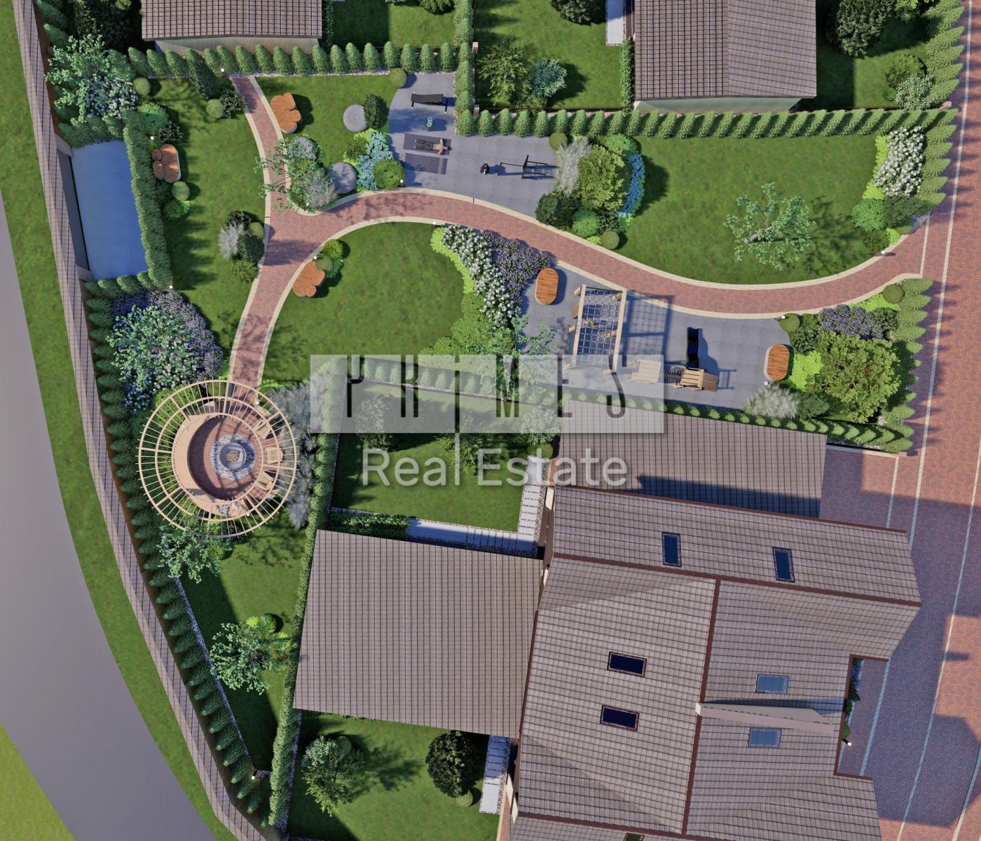 Це сучасне та нове котеджне містечко з 6-ти будинків (12 дуплексів). На території дуже якісно та комфортно продумано розміщення будинків між собою, благоустрій біля кожного з них та майданчики.